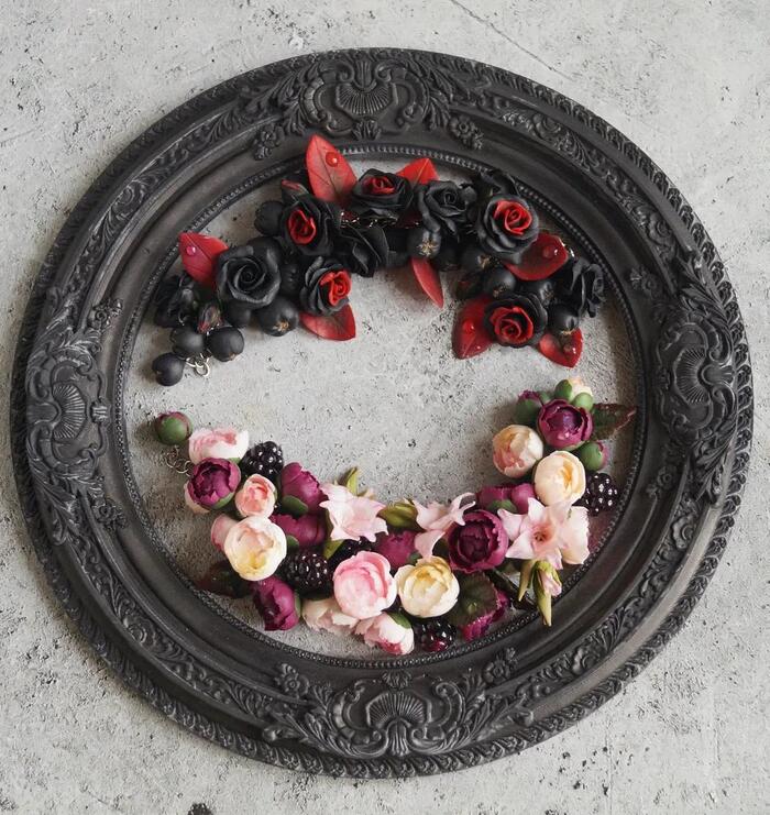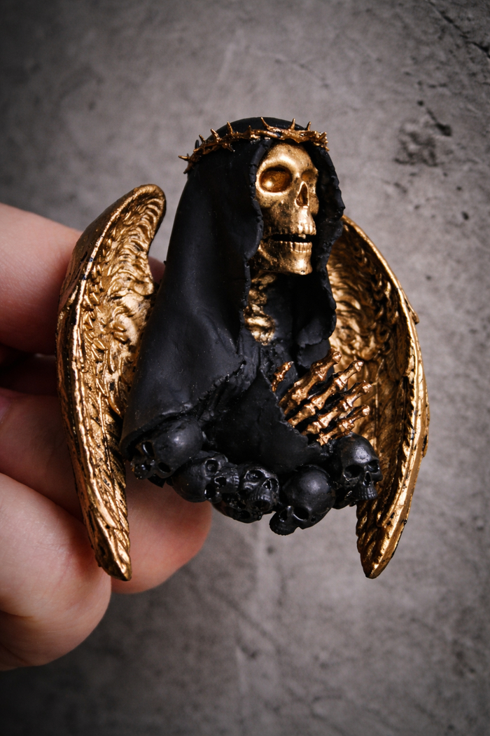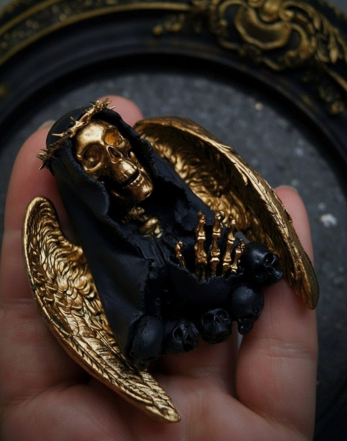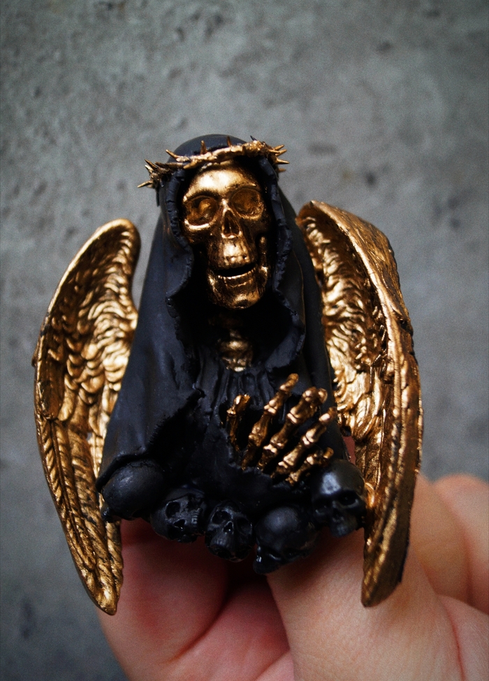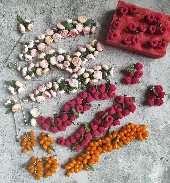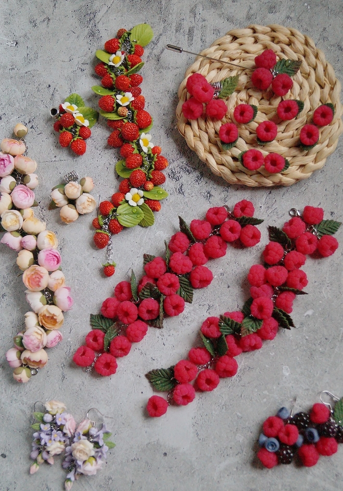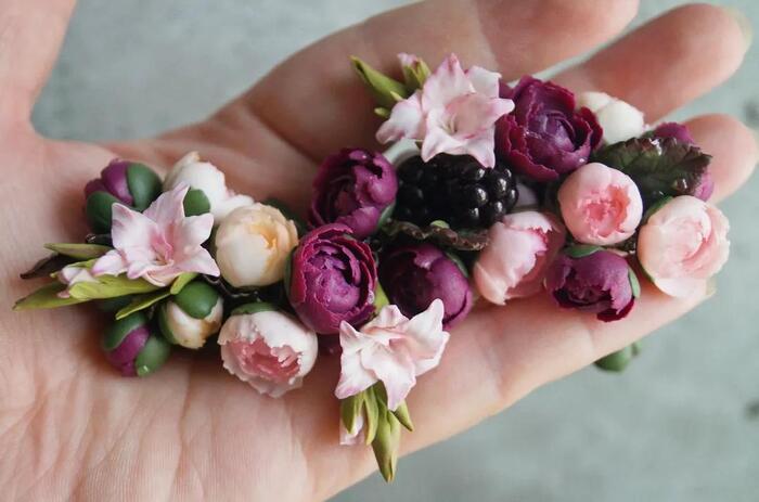 В работе были использованы силиконовые молды , полимерная глина, жидкая поталь, лак.