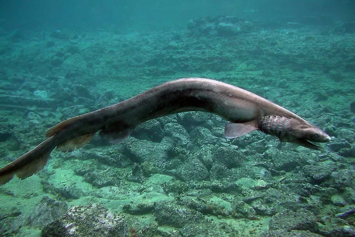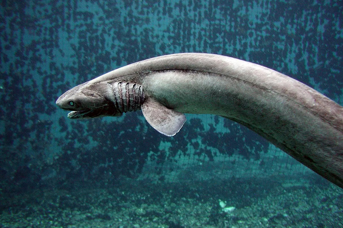 Знакомьтесь — плащеносная акула (Chlamydoselachus anguineus), один из самых древних видов акул на Земле. Учёные называют её «живым ископаемым», и не зря: данный вид сохранил анатомические черты, бывшие в моде пару сотен миллионов лет назад. Это не машина времени, а настоящая капсула времени с зубами.