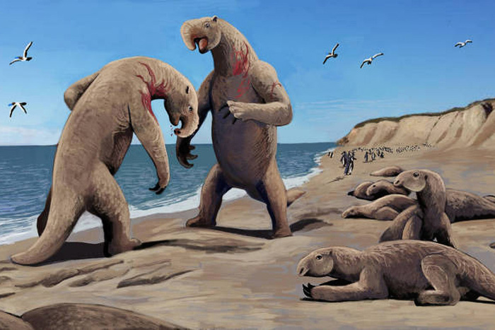Учёные предполагают, что у этих животных был выраженный половой диморфизм и самки были в разы меньше самцов. Возможно они устраивали на берегах лежбища, подобно морским слонам, где самцы сражались за свои гаремы.