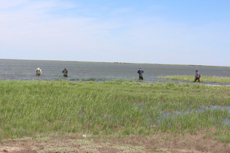 На подходе к озеру встретили компанию из четырех человек - Таубека Нуртасова, Нурлана Ибраева, Данияра Балгужина и Антона Алексеева. У них был пикник, жарили шашлыки.
