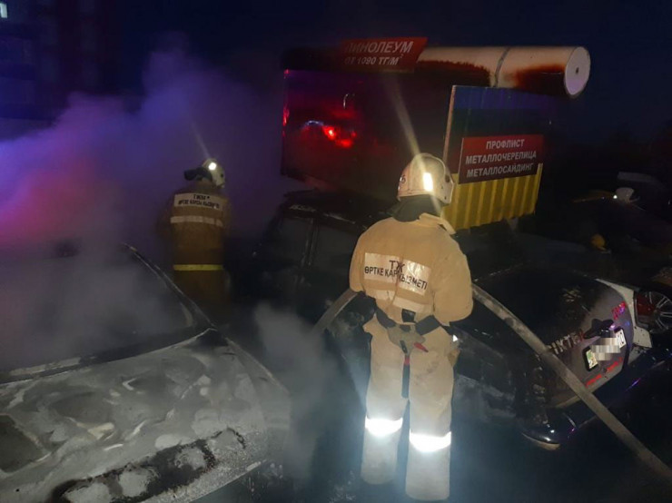 Две машины сгорели на парковке в Костанае