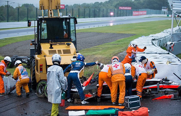 Жюль Бьянки, выступавший за англо-российскую команду Marussia, попал в серьезную аварию 5 октября 2014 года во время Гран-при Японии.