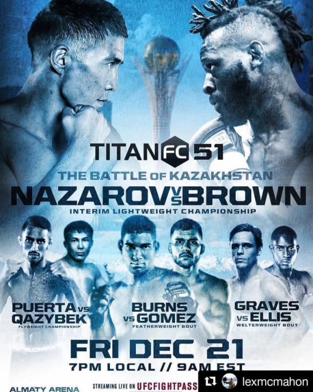 В другом титульном бою Titan FC 51 Казбек Ашимов досрочно уступил американцу Хуану Пуэрте, который завоевал вакантный пояс чемпиона наилегчайшего веса, а в еще одном поединке Айбек Нурсеит сдался после "треугольника" бразильца Герберта Бернса.