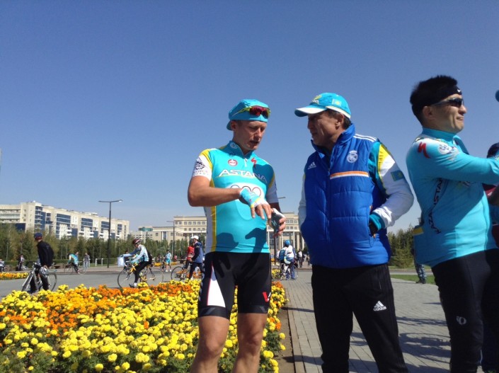 Накануне 20-летия Конституции Республики Казахстан в столице впервые прошло соревнование "Астана-дуатлон-2015". В спортивном мероприятии приняли участие аким Астаны Адильбек Джаксыбеков, а также олимпийский чемпион по велогонкам Александр Винокуров.