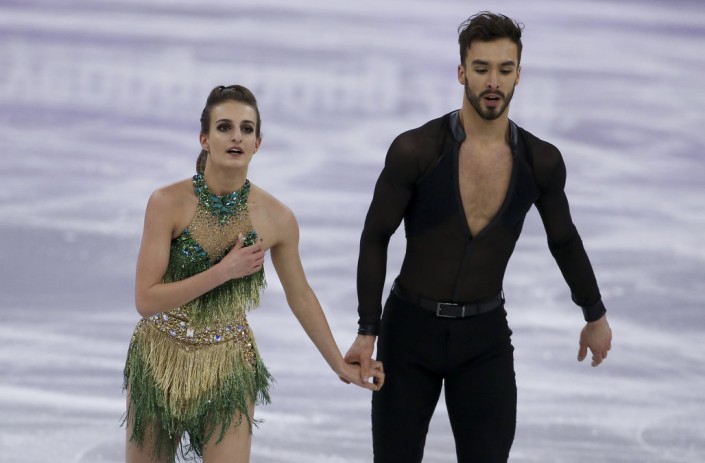 Несмотря на казус, французский дуэт занял второе место в короткой программе.