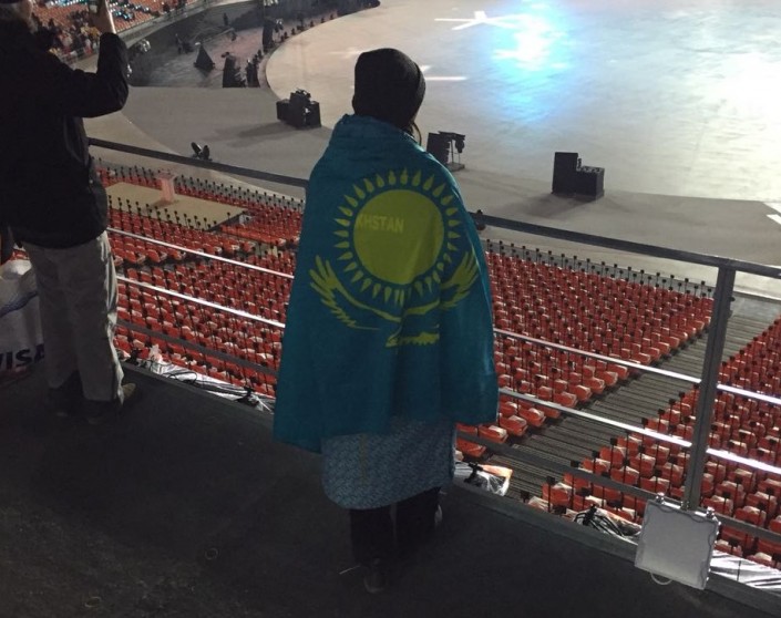 17.15 Болельщики из Казахстана с флагом