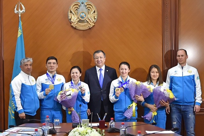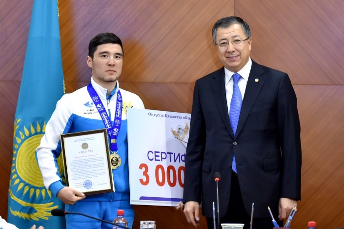 Поздравляя спортсменов с победой, он отметил, что их победу разделяют и три миллиона жителей региона, ведь не каждый день флаг страны столько раз поднимается благодаря южноказахстанцам.
