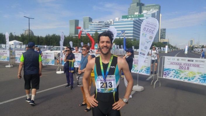 Девять часов утра, одна из главных улиц столицы возле "Байтерека" перекрыта. Через несколько минут здесь дадут старт турниру по дуатлону. Перед началом забега на разные дистанции участники разминаются и морально готовятся к началу соревнований.