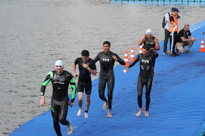 Вместе с индивидуальным стартом на той же полужелезной дистанции проведена и командная эстафета. Первым в индивидуальном зачете в секции плавания стал Станислав Редько из команды "Astana Team", который приплыл 1,9 километра за 21 минуту. Он опередил троих человек из категории профессионалов - Виктора Земцева из Украины, Ивана Тутукина из России и казахстанца Максима Крята.