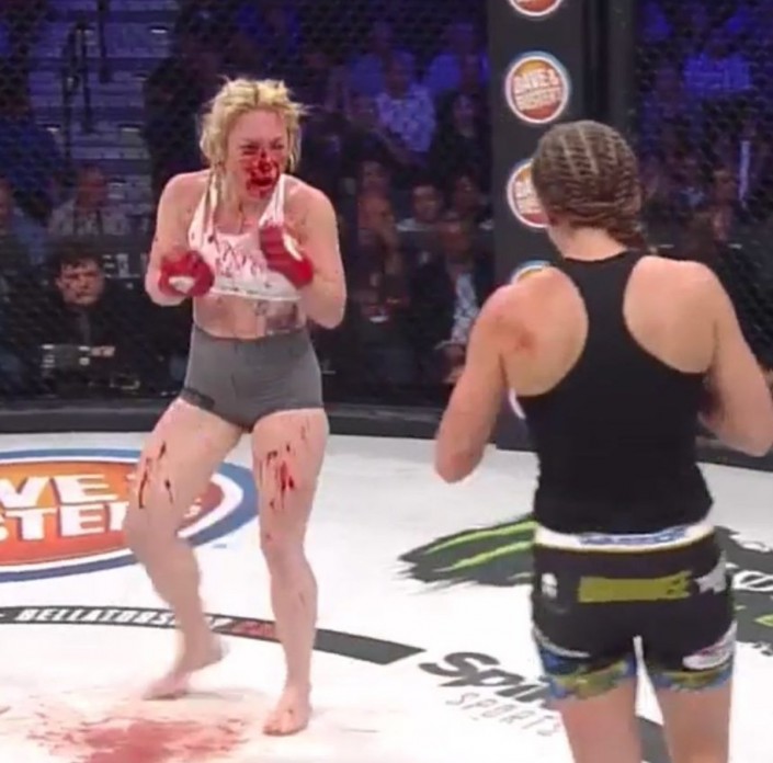 "Ух ты! Вундеркинда бокса Хизер Харди только что отдубасили на Bellator 185" - пишет MMA Raw&Uncut.