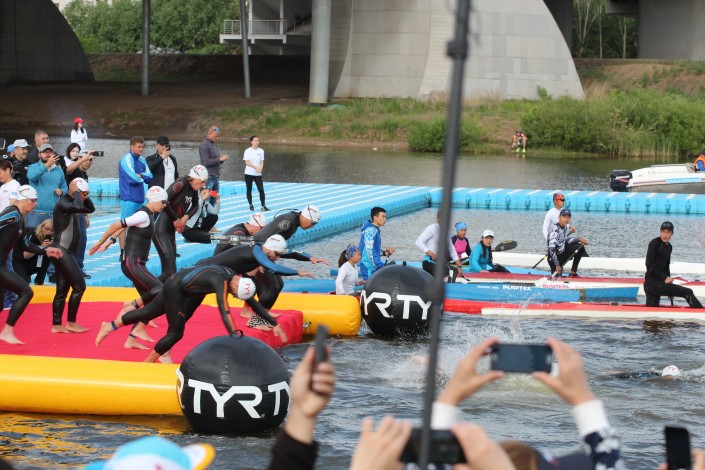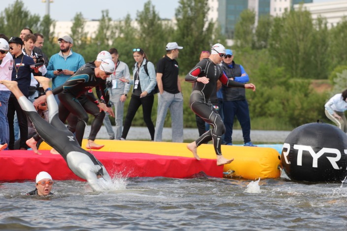 IRONMAN 70.3 Astana начались с плавания в реке Есиль (Ишим) в столичном Триатлон парке. Продолжилось состязание велогонкой на дистанцию 90 километров.