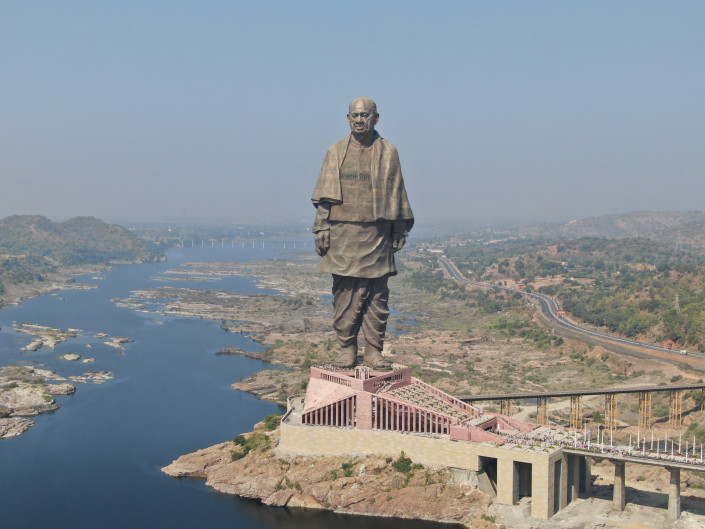 Статуя Единства, Раджпипла, Индия. На сегодняшний день это самая высокая статуя в мире. Ее высота превышает 182 метра, а вместе с постаментом получается все 240. Памятник был установлен в октябре 2018 года в честь 134-й годовщины рождения Валлабхаи Пателя, который был заместителем премьер-министра Индии и одним из лидеров движения за независимость Индии. Согласно официальным данным, над реализацией проекта трудились 250 инженеров и порядка 3400 рабочих. Стоимость строительства составила порядка 430 миллионов долларов. Статуя установлена на берегу реки Нармада в 30 километрах от города Раджпипла в штате Гуджарат. Возведение статуи считают личным проектом премьер-министра Нарендры Моди, который дал старт строительству памятника 31 октября 2013 года, когда занимал пост главного министра этого штата.