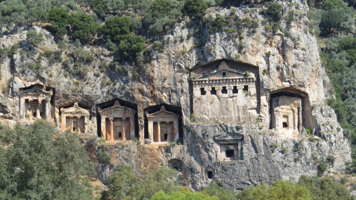 Историческое прошлое региона, находящегося под защитой Турции и ЮНЕСКО, так же богато, как его природа. Например, в Кауносе был создан первый в мире налоговый орган. Здесь впервые применили технологию обогрева домов теплым паром из источников. Можно здесь увидеть и метрополис - скальные захоронения, выглядящие то как фасады домов с пустыми окнами, то как парадные подъезды богатых резиденций, то как сказочные дворцы. В Турции таких захоронений не одна сотня. При этом разбросаны они по огромной территории. Самые известные находятся в Фетхие, Амасье (могилы понтийских царей) и на реке Дальян. Это захоронения ликийского периода. Сама древняя Ликия располагалась на территории современных турецких провинций Мугла и Анталья. Согласно древнегреческому мифу, богиня Лето (мать Аполлона и Артемиды), рожавшая в горах Малой Азии, дала ей такое название в память об охранявших ее волках.