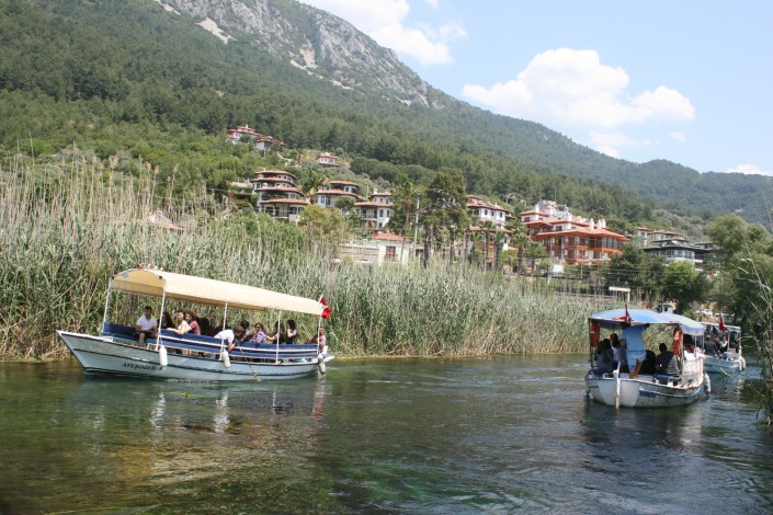 Из озера Кёйджегиз (переводится как "маленькая деревушка") вытекает одноименная река Дальян, на берегу которой и расположился наш городок. Начать осмотр окрестностей предлагаем с экскурсии на лодке – чтобы полюбоваться нетронутой красотой озера, связанного природным каналом с черепашьим пляжем. Вода в озере пресная, но она становится постепенно соленой по мере приближения к морю. Кроме того, в озере бьют горячие источники, именно им обязан своим существованием центр термотерапии Sultaniye Hot Spring. Это место известно на весь мир своими радоновыми источниками и знаменитыми грязевыми ваннами, помогающими при лечении многих болезней.
