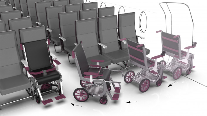 7. Также дизайнеры предлагают установить в самолетах инвалидные кресла, совмещаемые с пассажирским местом. То есть пассажиры могут добраться от аэропорта до самолета, прикрепиться к указанному месту, а после спокойно выехать по прибытии.