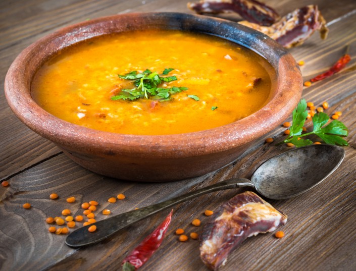 Обязательно попробуйте местный чечевичный суп, или мерджимек чорбасы. В стране выращивают множество видов бобовых культур, среди которых большую любовь завоевала чечевица (красная, желтая, зеленая). Именно красная чечевица стала основным компонентом знаменитого национального супа, который по разным рецептурам могут дополнять луком, морковью и картофелем. Такое блюдо обязательно приправляют хлопьями красного перца и соком лимона. Кроме этого супа, попробуйте также тархана чорбасы (национальное блюдо из высушенных и перемолотых овощей, дрожжей и муки), суп из вермишели с зеленой чечевицей и суп из потрохов.