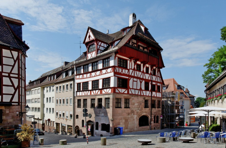 Полина прошлась к реке Нюрнберга под названием Пегниц и по пути показала старые фахверковые (балочные) дома. Также зрители прямого эфира могли увидеть фонтан, посвященный маленькому волынщику, который заболел чумой, но выжил. Вспышек чумы в средние века по всей Европе было очень много, и сейчас это тоже стало актуальной темой. Гид также рассказала своим зрителям о городских пряностях, пряниках без муки Elisen, нюрнбергских сосисках и пиве.
