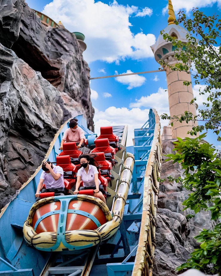 В аквапарке Caribbean Bay можно плавать в бассейнах и кататься с горок. Кроме того, у гостей есть возможность посетить корейскую баню.