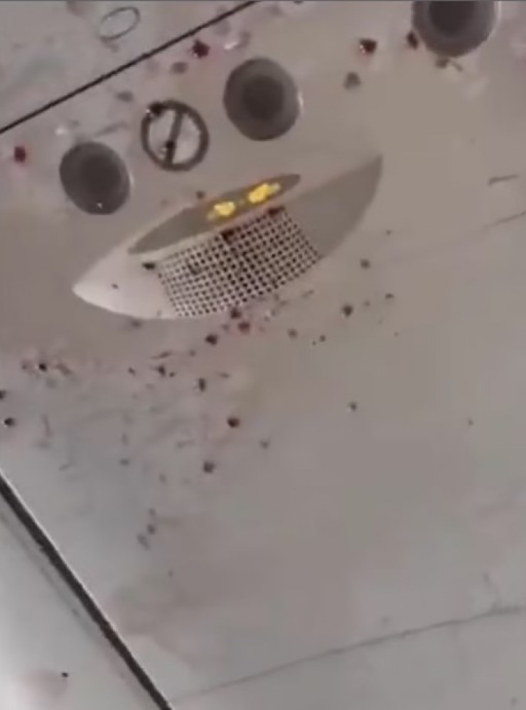 За кадром также слышны крики пассажиров, ведь некоторые из них получили серьезные ранения. В одном из кадров можно увидеть пластиковый поднос, втиснутый в щель на потолке", - описывает издание видеоролик, снятый прямо в эпицентре событий.