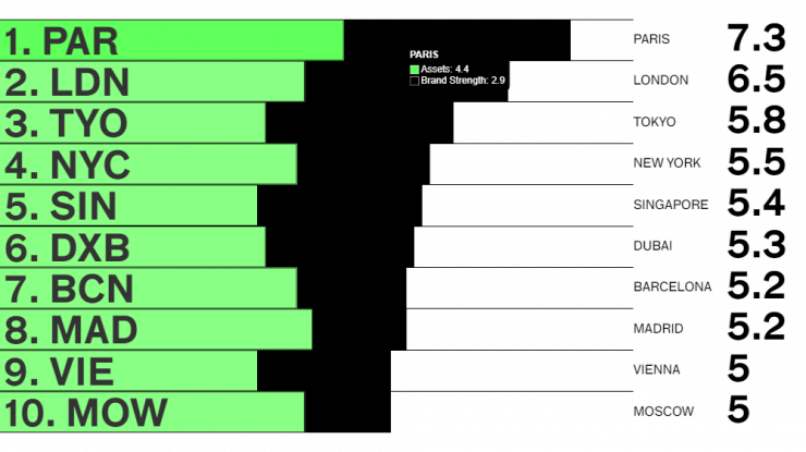 Всего в рейтинге 109 городов мира, которые, по мнению авторов, имеют больше значение для глобального туризма, где больше всего растут показатели посещения, больше всего тратится денег туристами и где туризм имеет значительную долю в местной экономике. Исследователи опросили более 1000 специалистов по всему миру. Оценивались "активы" города - что он может предложить туристам и репутация - сколько людей говорят о выбранном городе и какие у них впечатления.