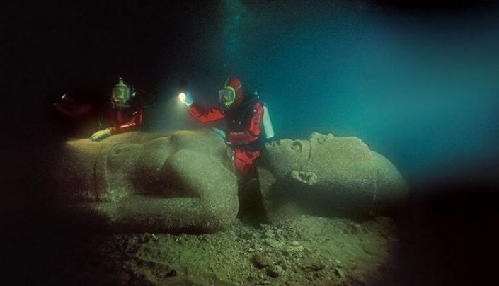 Гераклион, Египет. Этот древний город считался вратами Египта и находился в 25 километрах к востоку от Александрии. Гераклион был обнаружен одним из самых знаменитых археологов подводного мира Франком Годдио в 2000–2001 годах. Совместно с археологами Франции, Америки и Египта Франком Годдио были проведены подводные археологические раскопки, шесть лет провели археологи, исследуя воды бухты Абукир. И лишь летом 2012 года Франк Годдио объявил, что он обнаружил останки города, которые, по его мнению, относятся к Гераклиону, им была найдена черная гранитная плита, на которой было высечено "Гераклион".
