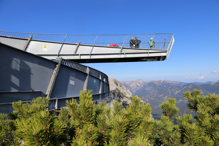 Смотровая площадка на плато Дахштайн (Австрия) сооружена на высоте 2100 метров. Ее также называют "Пять пальцев" из-за необычной формы, похожей на пальцы огромной руки, нависающие над пропастью. На каждой из пяти платформ есть что-то свое, особенное: стеклянный пол или бесплатный телескоп, специальная картинная рама для фотографирования или небольшое отверстие в полу. Вид с этой площадки изумительный в любое время года. Здесь же, в горной гряде Дахштайн, на самой вершине, прямо на ледяном покрове скалы есть необычная "Лестница в никуда". Она висит на высоте 2 743 метров и заканчивается стеклянной платформой, с которой открывается головокружительный вид на горный пейзаж австрийских Альп.