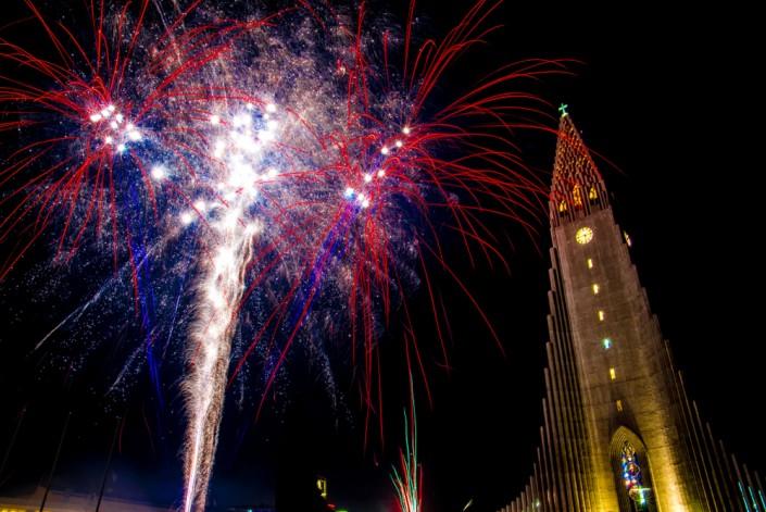 Рейкьявик. Исландия часто занимает верхние позиции в рейтингах стран для зимних путешествий. Не стала исключением и встреча Нового года. Жители этой сказочной суровой страны отмечают первый в году праздник весело и очень шумно. Местные жители верят: чем больше шума, тем больше удачи будет в новом году. На главной площади Рейкьявика разжигается огромный костер, вокруг которого происходят массовые празднования. Лучшие виды на праздничный салют, который организуют сами жители, открываются с площади церкви Hallgrímskirkja, а также с холма Skolavörðuholt.