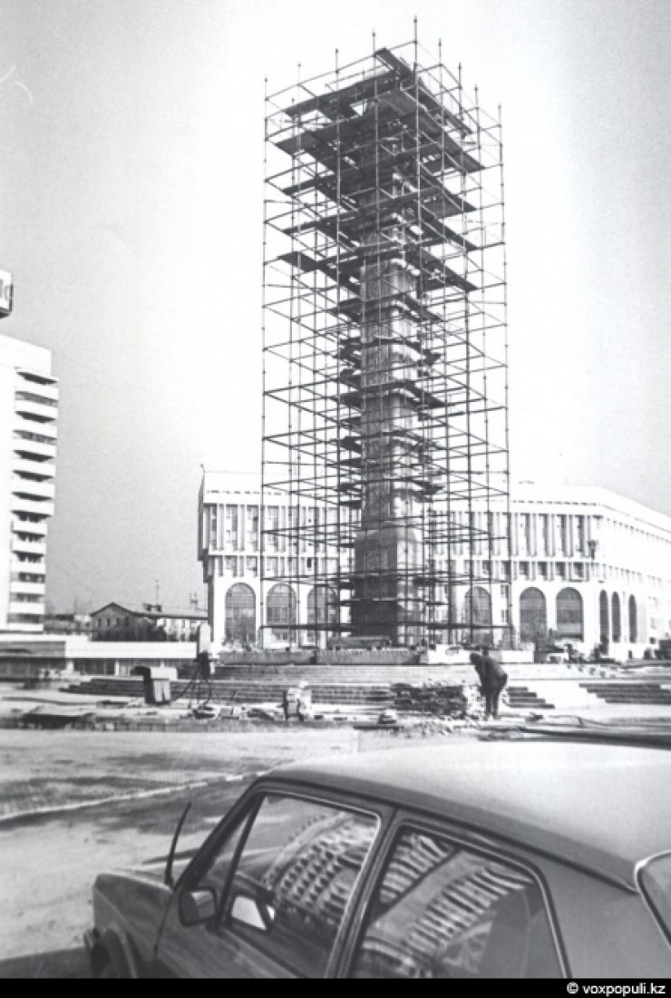 Монумент Независимости на этапе строительства / Фото с сайта voxpopuli.kz