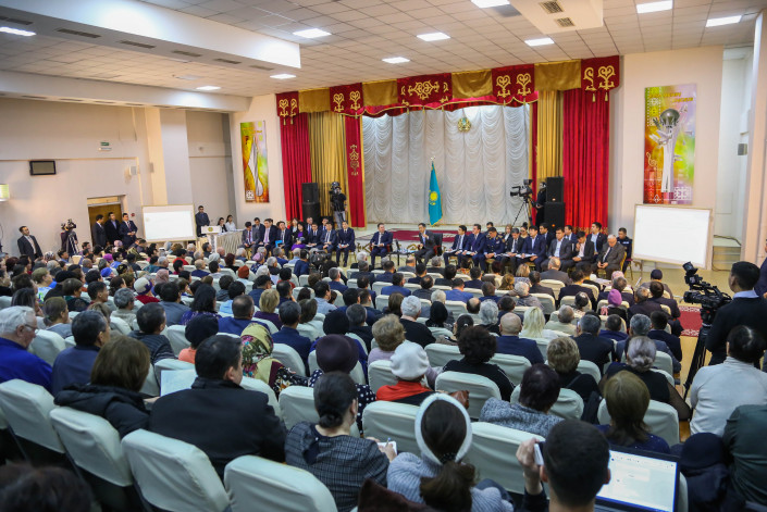 Это вторая встреча акима Бакытжана Сагинтаева с жителями этого района, первая была три месяца назад. Как позже скажет аким, сегодняшнее мероприятие - своего рода отчет о проделанной работе.
