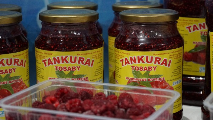 "Активно развиваются и нетрадиционные отрасли сельского хозяйства. Насчитывается 260 различных проектов, в текущем году реализуется 75 проектов на сумму 2,5 миллиарда тенге… Компания "Эко ферма 2015" применяет передовой опыт выращивания клубники. (…) Крупнейшая в Казахстане малиновая плантация продолжает расширятся. Сегодня на площадке 45 гектаров ежегодно собирают 150 тонн ягод", - объявлял голос с экрана.