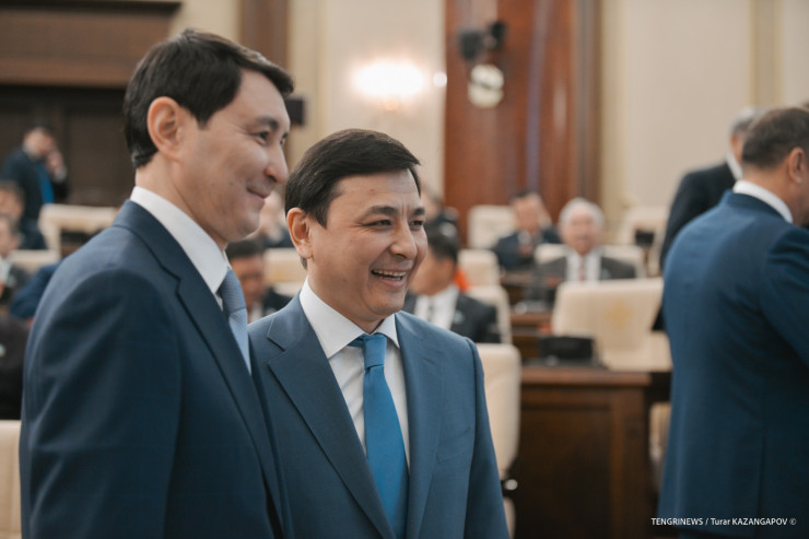 На фото снизу конкуренты по партиям, но, видимо, добрые соседи по местам в Мажилисе: Жигули Дайрабаев из "Ауыла" и Руслан Берденов из партии Respublica.
