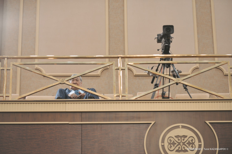 Один из интересных моментов успел запечатлеть наш фотограф до начала сессии. Пока все участники собирались на первом этаже торжественного зала, первый космонавт Токтар Аубакиров наблюдал за всем происходящим со второго этажа, как истинный пилот космического корабля.