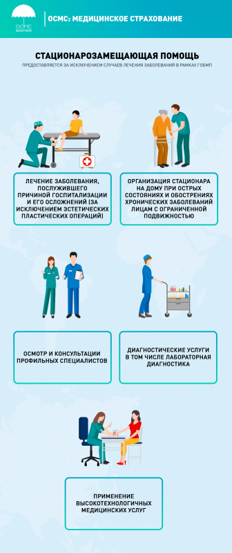 В пакет ОСМС также сверх ГОБМП будут входить дорогостоящие лабораторные услуги и обследования, расширенное амбулаторное лекарственное обеспечение, стационарозамещающая медицинская помощь, повышенный доступ к плановой госпитализации, восстановительное лечение и медицинская реабилитация.