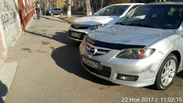 "По улице Шевченко, между улицами Байтурсынова и Масанчи, южная сторона Шевченко, возле стадиона автомобиль с госномером 393aab02 припарковался на тротуаре", - сообщил очевидец.