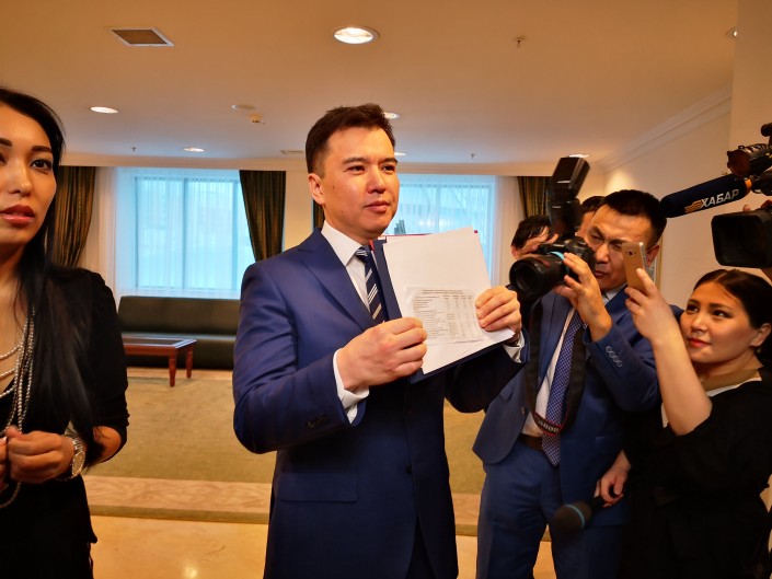Двое из новых - глава Минобразования Куляш Шамшидинова и министр национальной экономики Руслан Даленов - попали в кольцо журналистов и теперь отвечали на их вопросы.