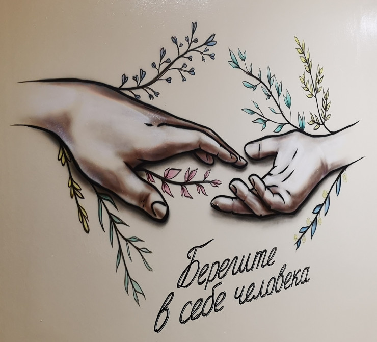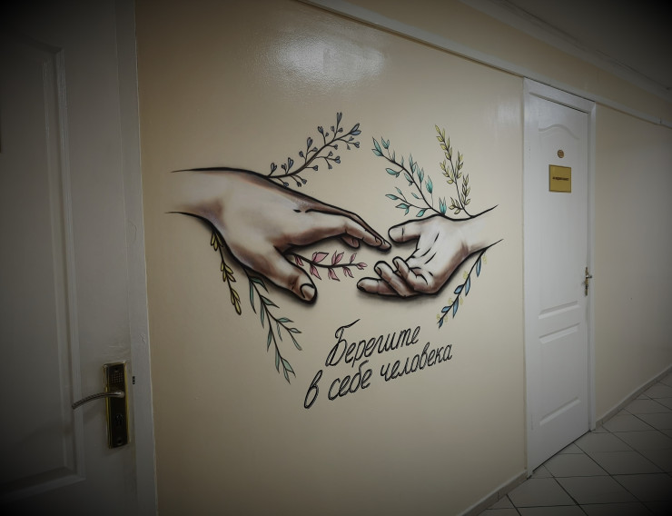 Кстати, о благодарности. В поликлинике центра на стене можно найти рисунок. Оказывается, сделал его сын одного из пациентов, который хотел как-то отблагодарить врачей за профессиональное выполнение ими своих обязанностей. У его отца подозревали рак желудка, но после проведенного исследования онкопатологию исключили. Рисунок он сопроводил надписью: "Берегите в себе человека", этот посыл, по всей видимости, должен приободрить других пациентов.