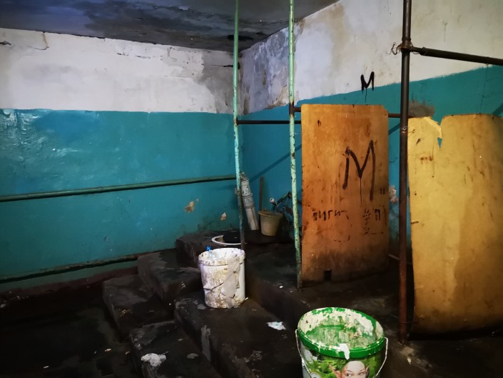В туалетах грязно, где-то неконтролируемо бежит вода, а в женской части и вовсе повалилась стена.