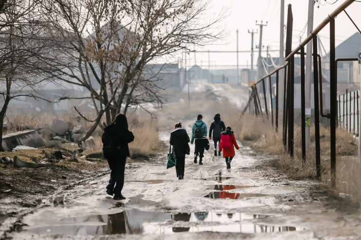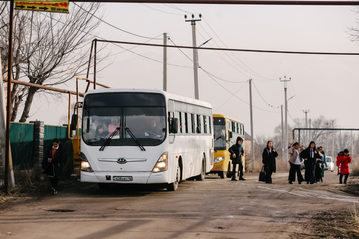 "Дети учатся в три смены. Первоклассников и второклассников мы отправляем на частных автобусах. За ребенка платим 10 тысяч тенге в месяц. Третья смена заканчивается после 7 вечера. С работы приходим, сразу идем встречать, так как переживаем за детей: темно, тут бродят собаки, много новостроек, интенсивное движение, а дороги, сами видите, какие".