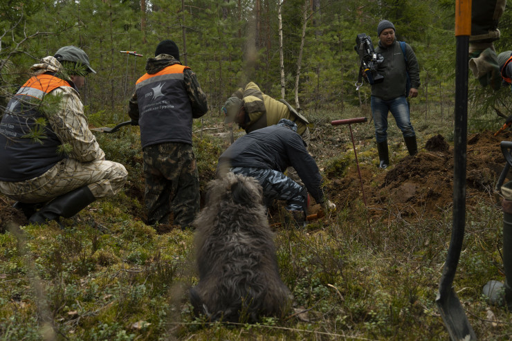 А тем временем в лесах продолжаются поиски. Примечательно, что среди тех, кто ищет останки бойцов, люди достаточно зрелого возраста.