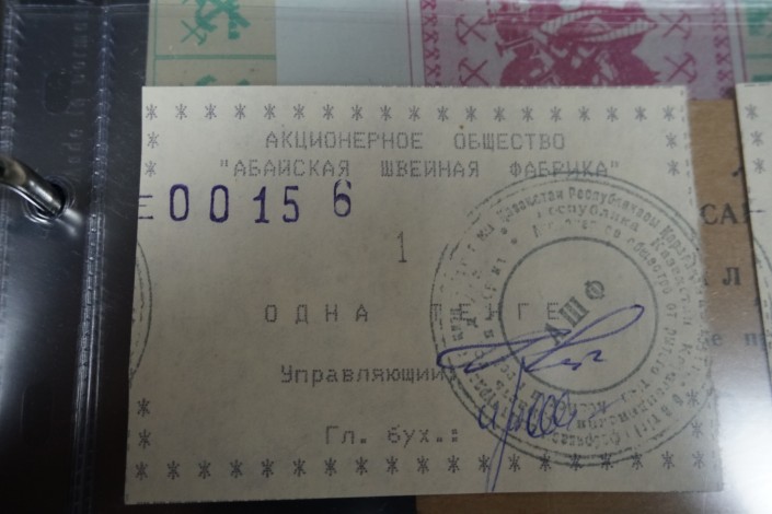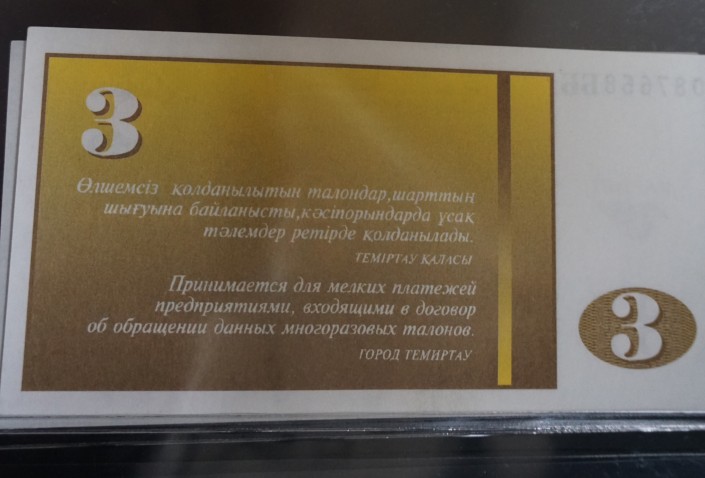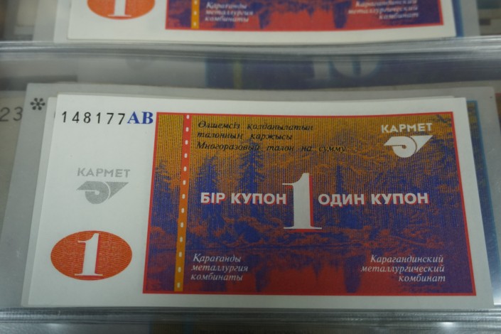 "Это наши, темиртауские деньги. Выпускал их Карагандинский металлургический завод. Одно время этих купонов было больше, чем тенге, - это я вам говорю как местный житель", - уверяет нумизмат.