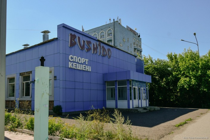 Бывшее здание аквапарка "Валют Транзит Банка" "Дельфин". После банкротства досуговый центр был закрыт. В 2016 году он вновь открылся после реконструкции.