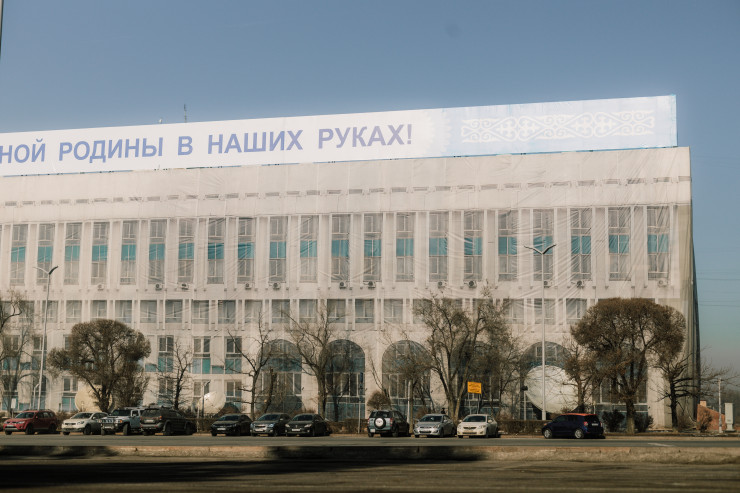 Разгромленное в январе бывшее здание Nur Otan в Алматы восстановили