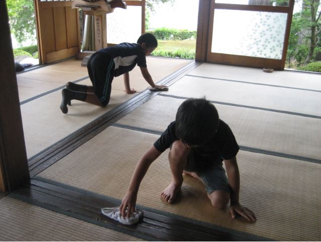 Расскажу о своем времени. Нас приучали убирать свою аудиторию уже с третьего класса. Пока мы не умели убираться, за нас это делали ученики шестого класса. Это развивает чувство взаимопомощи, и проявляется забота о слабых. Традиция пошла со средних веков: с XII века послушников в храмах приучали убирать свои кельи. И эта традиция продолжается и до наших дней. Для нас, японцев, убрать за собой - естественное дело. Никогда не встает вопрос: убрать или нет.