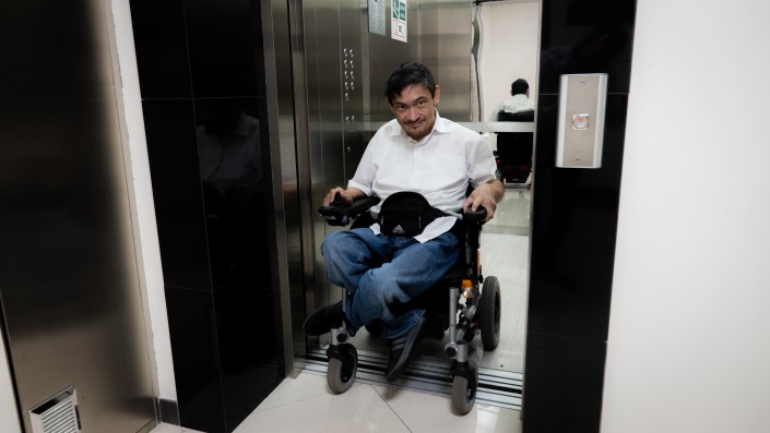 Также Ернару Сарсееву неудобно обращаться в отделения банков, многие из которых расположены в жилых домах. Когда у директоров филиалов спрашивают, почему нет пандуса, то они отвечают, что это "ответственность владельца, управляющего недвижимости - бизнес-центра или жилого комплекса". "Получается, нужно обязать банки организовывать отделения только в зданиях, которые пригодны для этого?" - вопрошает мужчина.
