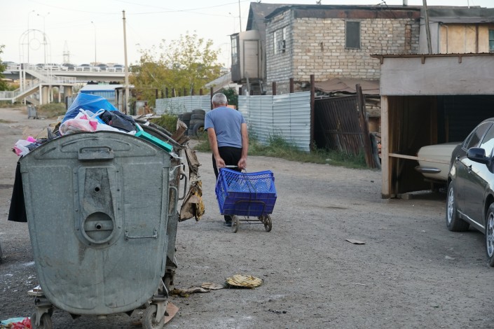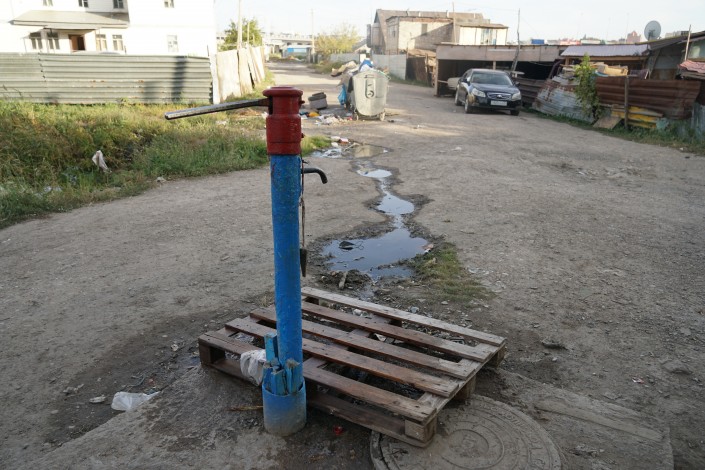 Рядом стоит колонка, откуда местные жители берут питьевую воду. "На весь район одна колонка осталась", - отмечает Гамиржан.