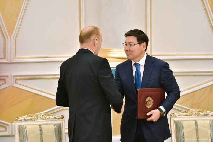 "Да, есть определенный дисбаланс в торговле в пользу Беларуси, но в последние годы - и это хорошие темпы - существенно вырос импорт из Казахстана", - заявил на переговорах Лукашенко. На фото сверху министр торговли и интеграции Бахыт Султанов как будто бы показывает коллегам существующий дисбаланс.