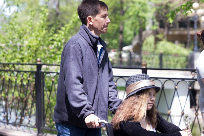 - Вы Кате Парафиевой задали вопрос про общественную деятельность. Я понял, что в нашей стране основная проблема - самовольная изоляция людей. Когда такое происходит, они сами загоняют себя в темный угол и стараются из него не выходить. На дороге человек в инвалидной коляске просит милостыню. Раньше я к этому относился спокойно. Сейчас меня это задевает: он замкнулся в себе, не хочет выйти, ему сейчас легче, чтобы жалели, подавали милостыню. Я посмотрел на Катю Парафиеву: она старается жить полноценной жизнью.