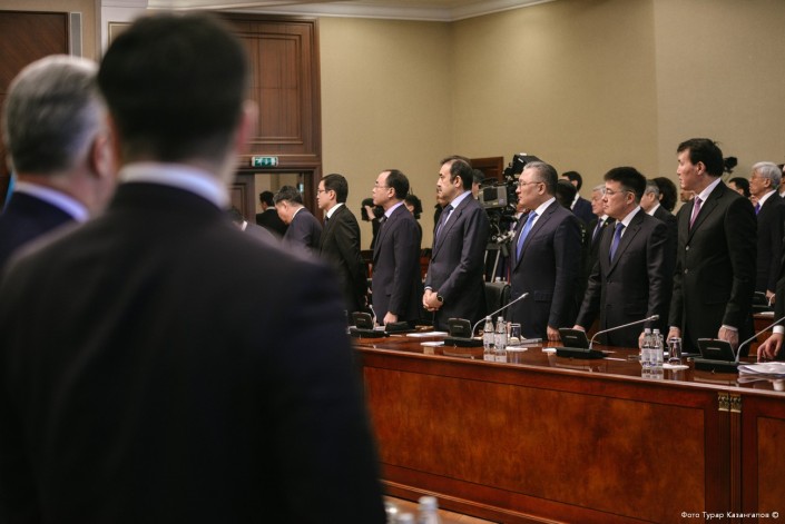 "...Актюбинская область, Астана. Вставайте все. Стойте, пока доложите", - обратился к акимам Назарбаев.