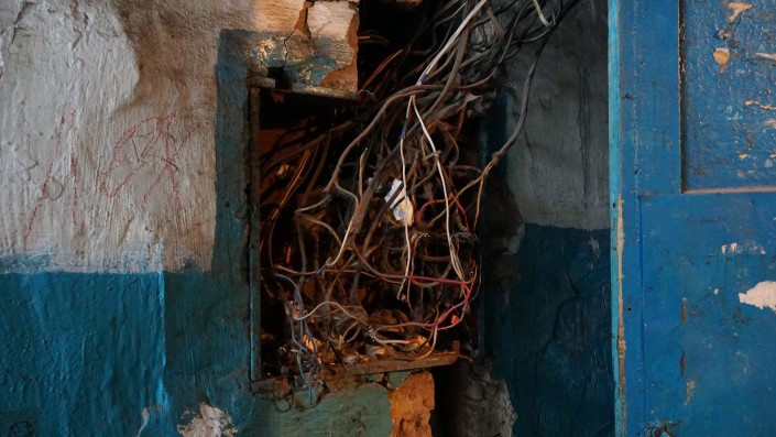 "Зимой идет пар из подвала, у нас здесь все в инее, провода замыкают", - рассказывают люди. Беспорядочно торчащая проводка здесь повсюду.