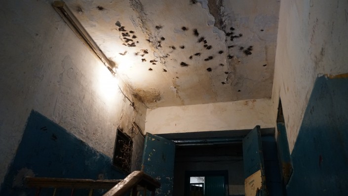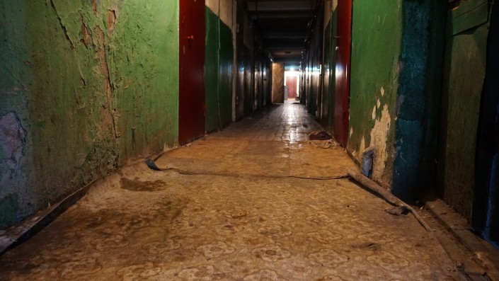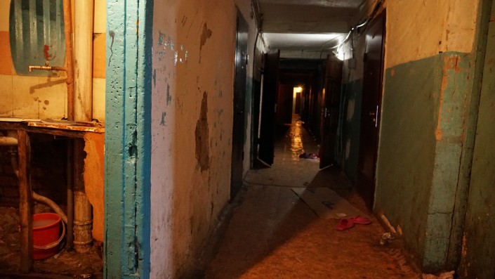 Общежитие в старой части Астаны. Заходим в подъезд, и первое, что бросается в глаза, - обшарпанная комната с коричневым умывальником. К нему подбегают дети и начинают мыть руки. Часть окна здесь закрыта кирпичами. Поднимаемся выше и на одном из этажей видим еще один умывальник, он засорен, под ним стоит ведро с мутной водой, она переливается через край. На стене зеркало, в котором отражение видно только наполовину. Пол мокрый. В коридорах общежития темно, лишь иногда горит желтая лампочка. Местами чувствуется резкий запах канализации. На каждом этаже есть туалет, он один на все 30 комнат. На вопрос, какая в доме главная проблема, жильцы советуют заглянуть в их уборную и сфотографировать. В подъезде много хаотично торчащих проводов, некоторые из них покрыты густым слоем паутины. "А еще у нас клопы и тараканы", - заявляет местная жительница. На стене надпись: "Ад". Таким корреспондент Tengrinews.kz Ренат Ташкинбаев увидел общежитие по адресу Янушкевича,12. Он пообщался с жильцами аварийного дома и узнал, почему не все из них хотят, чтобы их сносили.